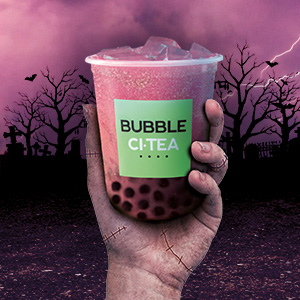 A sweet and fruity elixir, made of blueberry and white peach, bursting with limited edition grape popping bubbles and a magical swirl of gold glitter. The finest witch's potion!